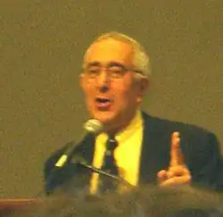 In 2001 former Republican United States Senator Rick Santorum from Pennsylvania proposed an amendment, to the education funding bill which became known as the No Child Left Behind Act, which promoted the teaching of intelligent design while questioning the academic standing of evolution in U.S. public schools.[5] The language of this amendment was crafted in part by the Discovery Institute's Center for Science and Culture, with Phillip E. Johnson, founding adviser of the Discovery Institute's Center for Science and Culture, and "father" of the intelligent design movement, assisting Santorum in phrasing the amendment.[6][7] It portrayed evolution as generating "much continuing controversy" and being not widely accepted, using the Discovery Institute's Teach The Controversy method.[8][9]