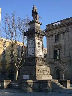 In Barcelona there was formerly a monument dedicated to him and the companies he founded. Located close to the Compañía Transatlántica Española head office, the monument A López y López was erected in 1884 and was designed by architect Josep Oriol Mestres and sculptor Venanci Vallmitjana. On its sides it has reliefs by Lluís Puiggener, Joan Roig i Solé, Rossend Nobas and Francesc Pagès. The monument was destroyed in 1936, but was restored in 1944 by Frederic Marès.[13] On March 4, 2018 the monument was finally removed after a campaign denouncing the involvement of Antonio López in the slave trade.[14]