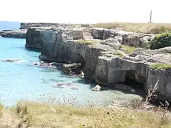 Southwest of Manfredonia, on the coast of the Gargano in northern Apulia, are the remains of a site initially occupied during the Neolithic, and reoccupied during the Protoapennine, Apennine, and Subapennine phases of the Bronze Age. The site was fortified and has evidence of early purple dye and olive oil production, as well as contacts with the civilizations of the Aegean.