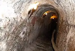 Stairs cut into rock in a wine cave in Aranda de Duero -