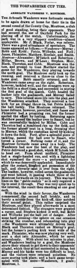 1895–96 Forfarshire Cup 2nd Round, Arbroath Wanderers 2–1 Montrose (result overturned), Arbroath Herald, 21 November 1895