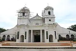 Construction began in 1836 and the works were completed in 1848.[6] When a typhoon caused the destruction of the church's roof made of clay tiles, it was renovated with iron sheets in 1877 and in 1894, the interiors were decorated.[2] Towards the conclusion of World War II, the building sustained heavy damage to all parts of the church and the nearby convent did not survive the war. One of the few parts of the church that sustained little damage was the facade which still remains in its original state.[5][2] Post-war restoration efforts were carried out by Teofilo Camomot and because of damage sustained during World War 2 the roof was lowered significantly.[5]