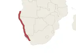 The species has a distribution confined to the Angola–Benguela Frontal Zone (ABFZ) of the southeastern Atlantic Ocean. A study revealed that during a period of local warming, the species extended its distribution into Namibian waters, where it hybridised with the resident and congeneric Argyrosomus inodorus.[4]