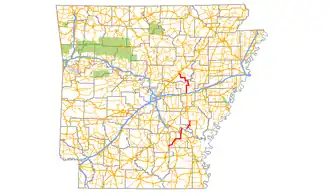 1. ^ a b c d e f g Planning and Research Division (2010). "Arkansas Road Log Database". Arkansas State Highway and Transportation Department. Archived from the original (Database) on June 23, 2011. Retrieved June 9, 2011.