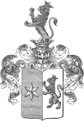 Coat of arms of the Crutta (1830) The last kings of Poland were represented at the Sublime Porte by the Albanian lineage of the Crutta, whose genealogy in all likelihood goes back farther than the diploma of «amplissima nobilitas», issued to them at the beginning of the 17th century by La Serenìssima, while they were still serving as Stratioti in Antivari (Dulcigno), on the coast of the Adriatic. The Crutta brothers, Pierre and Antonio, entered the services of King Stanisław Poniatowski, after he had reorganized his diplomatic mission in Lepanto.[84] Together, they founded the Polish Oriental School of Istanbul and took part in the Kościuszko Uprising. The council meeting of 1775, in Warsaw, acknowledged their Venetian nobility and also granted them Polish nobility, that is to say... nativeness. Polyglots and men of letters, the Cruttas left behind several manuscripts related to philology. At the end of a very long and active career, after having survived the era of division within Poland and the Napoleonic Wars, Antonio Crutta died at the castle of Lewiczyn, in the home of his son-in-law, Count Bedlinski. His white marble tomb, decorated with the Venetian coat of arms of his family, survived with its Latin epitaph.[85] Located in the north-western part of the parish cemetery in Lewiczyn, an obelisk carved in sandstone, in the form of a Doric column, rises, topped with an urn, partially covered by a spire, decorated in a vine garland. Above the epitaph inscription that describes the names of Antoni Krutta (d.1812) and that of his daughter, Eliza – married to general Wojciech Piotr Bedliński – there are two precisely carved coats of arms: