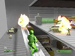 The game goes between Sarge's 'realistic' world and real world, in which Sarge is the size of a typical plastic Army Man soldier. It features many interactive effects, such as breakable wine bottles, bustable soda cans and music that spikes in intensity when enemies attack.