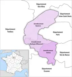 The 3 arrondissements of the Hauts-de-Seine department are:[1]