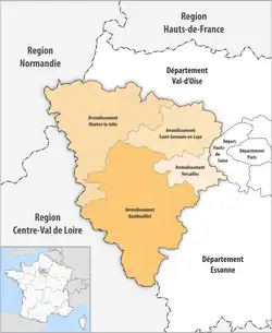 The borders of the arrondissements of Yvelines were modified in January 2017:[4]