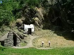 The village was one of at least ten Chinese settlements established in Otago for the purpose of gold mining in the 1800s. In 1865, the first Otago gold rush was over, and many European miners flocked to the newer goldfields of the West Coast in hopes of making a living there instead. Worries about Otago's economy post gold rush were expressed by the Provincial Council, who then invited Chinese miners from Victorian mines to continue mining the area.[2] 1866 census data show a Chinese population of less than 200 in Otago, but this number grew by thousands in the following decades.[3] By 1888, there were around 60 Chinese people living in the Arrowtown settlement. The settlement became the main hub for Chinese mining ventures in the Arrow River, Cardrona, and Macetown. Huts were built into the area's schist rock cliffs for protection and shelter. In 1885, the Arrowtown Chinese settlement had ten huts, at least two stores, and a town hall.