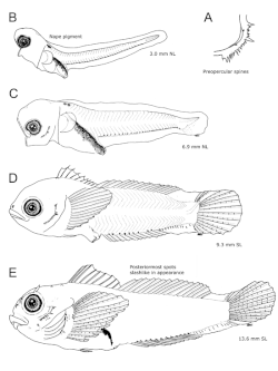 9. ^ Ragland, H. Craig; Fischer, Eric A. (December 9, 1987). "Internal Fertilization and Male Parental Care in the Scalyhead Sculpin, Artedius harringtoni". Copeia. 1987 (4): 1059–1062. doi:10.2307/1445578. JSTOR 1445578.