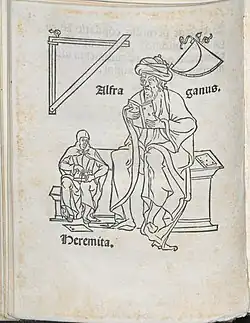 Portrait of Alfraganus in the Compilatio astronomica, 1493. Islamic astronomers collected and translated Indian, Persian and Greek texts, adding their own work.[26]
