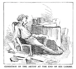 Augustus Hoppin (1828–1896) was an American book illustrator, born in Providence, Rhode Island. He graduated from Brown University in 1848 and Harvard Law School in 1850 and was admitted to the bar, but soon gave up the law and went to Europe to study art. Upon his return to the United States he devoted himself to drawing on wood and to the illustration of books, in which he was successful. His pictures in Nothing to Wear (1857), Poliphar Papers (1853), and The Autocrat of the Breakfast-Table (1858) are widely known. He published several volumes of sketches and novels, among the latter Recollections of Auton House (1881) and Married for Fun (1885).