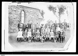 A general store and saddlery opened in 1876. Australia Plains Post Office operated from 1 April 1882 to 31 May 1971.[3] In 1883, a German Lutheran church and school were established. Later, in 1894, the church was replaced by St Johannis Lutheran Church. During World War I, the school had to close down due to the prevailing anti-German sentiment at the time.[6][7] It was replaced by a public school which operated from 1917 until 1956. St Johannis Lutheran Church closed in the 1970s, and is now a private residence.[8]