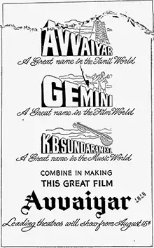 - ^ a b c "dated October 16 and 18 (No issue on October 17), 1953: Praise for Gemini's 'Avvaiyar'". The Hindu. 17 October 2003. Archived from the original on 30 December 2003. Retrieved 18 July 2013.