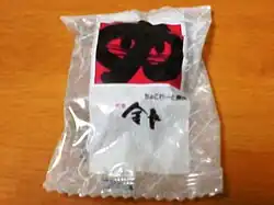 • Kincho Manjū: This confectionary, themed after Kinchō and produced by Hallelujah Confectionary, is a representative souvenir of Komatsushima.[5] Created with the idea "Komatsushima means Kinchō Tanuki," it became hugely popular, riding the wave of the 1939 film's success.[47]