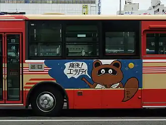 • Tanuki Buses: In 1994, coinciding with the release of Pom Poko, city buses operated by the Komatsushima City Transportation Department (小松島市運輸部) were decorated with tanuki designs as part of a wall art project. Due to positive reception, more buses were decorated, eventually reaching five, which operate within the city.[27]