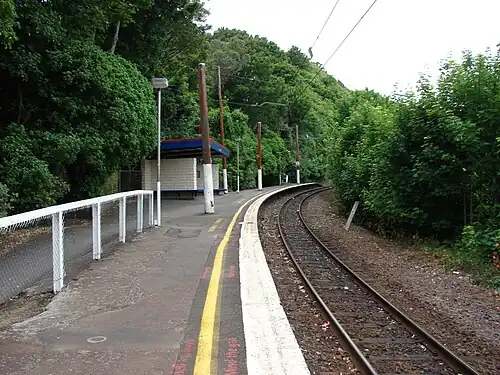 Awarua Street railway station is one of eight stations on the Johnsonville Branch, a branch railway north of Wellington in New Zealand’s North Island, and serves the suburb of Ngaio. It is one of two stations that were added to the line when it was upgraded prior to being reopened as the Johnsonville Branch. It is one of four stations on the line located on a curve.