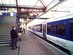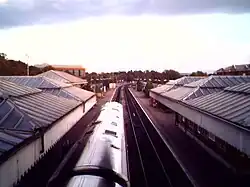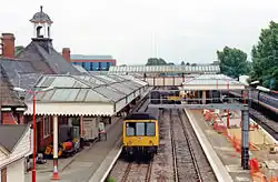 Aylesbury railway station is a stop on the London–Aylesbury line, serving the town of Aylesbury, Buckinghamshire, England; it is 38 miles (61 km) down the line from London Marylebone. A branch line from Princes Risborough on the Chiltern Main Line terminates at the station. It was the terminus for London Underground's Metropolitan line until the service was cut back to Amersham in 1961. The station was also known as Aylesbury Town under the management of British Railways from c. 1948 until the 1960s.[1]