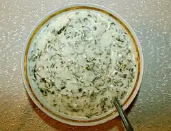 Spices play an important role in Azerbaijani cuisine, especially saffron which is used in over 50 national dishes.[20] Other spices widely used in Azerbaijani cuisine include anise, cumin, cinnamon, thyme, coriander seeds, curcuma, sumac, caraway, bay leaves, mint, dill, parsley, celery, tarragon, and basil.[21]