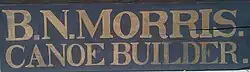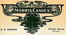 The B.N. Morris Canoe Company of Veazie, Maine, produced wood and canvas canoes from 1891 until fire destroyed the factory late in 1919. The shapeliness, style, and workmanship of the Morris canoes and boats made some of the most picturesque craft that were ever built with this construction form.[1]