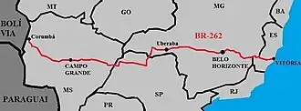 BR-262 is an east-west highway connecting the Brazilian states of Espírito Santo, Minas Gerais, São Paulo and Mato Grosso do Sul.[1][2][3]