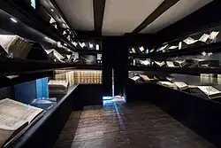 Since 2017 a room in between the historical living quarters and cladded in black hosts the exhibition space Bach's inner world.[61] Presented here is a reconstruction of Bach's theological library, facilitated by the written estate which lists 52 theological book titles bound in 81 volumes as having been privately owned by Bach.[62]