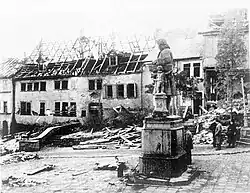 An air raid on 23 November 1944 and artillery fire by the approaching U.S. troops in the night of 5 April 1945 caused substantial damage to the roof of the Bach House in particular.[20] On 29 April 1945, the U.S. commander of the city, Lt. Col. Knut Hansston, ordered the museum to be repaired immediately, and one year later, on 22 June 1946, the Soviet Military Administration ordered the Johann Sebastian Bach museums in Arnstadt and Eisenach to be re-opened and confirmed the appointment of Bach House Director Conrad Freyse to the post in which he had been working since 1923.[21]