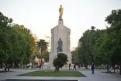 There are excellent monuments and pieces of sculpture scattered all along the city: in the streets, main buildings and green spaces such as Caronti's bust, facing the City Hall, the Memorial to Bernardino Rivadavia, at the centre of the main square, Fuente de los Ingleses and Memorial of the Israeli community, in the same square. The statue of José de San Martín, in Parque de Mayo, the sculpture group of Lola Mora in the fountain at the front of Universidad del Sur, the memorial to Giuseppe Garibaldi, the statue of Isabel I of Castile in front of the bus station, donated by the Government of Spain (no such pieces are donated to non capital cities as it has been this case, enhancing the importance of the local Spanish descendants), the pieces which decorate the frontispieces of Banco de la Nación, Edificio Banco Provincia, to the side of the City Hall, Saint George and the Dragon of the former electrical power plant of Ingeniero White in the Port, the ones of the former building of La Nueva Provincia and those of the cathedral are unique, as well as the modern art ones which form the group of Paseo de las Esculturas, indeed remarkable. Although not a sculpture, the mural mosaic of Colegio Don Bosco, on the corner of Vieytes and Moreno streets, by Aurelio Friedrich -a local plastic artist- is to be mentioned. All of them do enrich the architectural, artistic and cultural patrimony and heritage of the city. Multiple green spaces have been created in the city: Plaza Rivadavia (its main square), Parque de Mayo, Paseo de las Esculturas, Parque Independencia, Plaza 9 de Julio, and Plaza Villa Mitre, are the most familiar ones.
