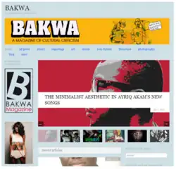 Bakwa is an online and print literary magazine based in Yaoundé, Cameroon. First published in 2011, it has been described as "an eclectic, intelligent take on the dynamic cultural scenes often missed by mainstream, western media".[1] Notable contributors include: Imbolo Mbue, Kangsen Feka Wakai, Jeremy Klemin, Serubiri Moses, Minna Salami, Jack Little, Emmanuel Iduma, Bwesigye bwa Mwesigire and Johnnie MacViban.[2][3]