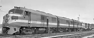 The Baldwin DR-4-4-1500 was a 1,500-horsepower (1,100 kW) cab unit-type diesel locomotive built for freight service by the Baldwin Locomotive Works between November 1947 and June 1950. It was produced in two different body types, nicknamed the "Babyface" and "Sharknose" styles by railfans, though Baldwin used the same model number for both. 22 "Babyface" cab-equipped A units were built, along with 11 cabless booster B units; 36 "Sharknose" A units and 36 B units were constructed, making a total for all models of 105 locomotives built.