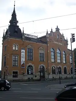 On July 27, 1838, the spirits burner Karl Joseph Watzke acquired the catering business, including the Schank concession. He gave her the name Watzke's garden restaurant with Elbterrasse.[2] The restaurant remained family-owned and was expanded several times. In 1898, a year after Pieschen had been incorporated into Dresden, the old economy was demolished and a ball-house with a large ball hall was built by Gustav Paul Watzke (the grandson of the first Watzke host) First floor. It stands on the Kötzschenbroder Straße 1, which is located in the neighborhood of the village center Altpieschen, but already belongs to Mickten. The house in Neo-Empire style[3] was given the name Watzke's Concert- and Balletablissement. The architect was Benno Hübel; the ceiling painting in the hall was by Emil Schulz. With 770 seats, the building had one of the largest halls in the city of Dresden.[4] After Paul Watzke was drafted into the military in 1914, the house served as a temporary shelter.