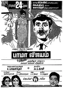 Bama Vijayam (/bɑːmɑː viəjəm/ transl. Bama's visit) is a 1967 Indian Tamil-language comedy film directed by K. Balachander. The film features an ensemble cast including Sowcar Janaki, Rajasree, Kanchana, Jayanthi, Sachu, R. Muthuraman, Nagesh, Major Sundarrajan, Srikanth and T. S. Balaiah. It revolves around a man's three daughters-in-law who go to absurd lengths to impress an actress who becomes their neighbour.