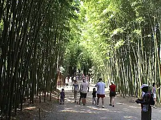 The garden contains one of Europe's oldest bamboo collections, established in 1856 by amateur botanist Eugène Mazel (1828-1890), who had made his fortune in the spice trade, and who continued to build the collection until he encountered financial problems in 1890. Although the garden subsequently changed ownership several times, it has continued to be a showcase for bamboos, and today contains around 300 bamboo species and cultivars, as well as other plantings of Asiatic shrubs and trees, Ginkgo biloba, sequoia, Trachycarpus fortunei, a replica of a Laotian village, and some 5 km of water canals.