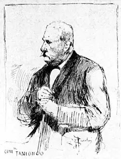 Increasing the crisis, the Giolitti and the Crispi-Tanlongo camp leaked documents to the detriment of both politicians.[17] The trial against Tanlongo and other directors of the bank for embezzlement and other fraudulent practices began on 2 May 1894.[22] Testimony at the trial revealed that Giolitti had been aware of the condition of the Banca Romana in 1889, but had held back that information. Giolitti also allegedly received money from the bank for election purposes.[23] Emotions at the trial sometimes ran high; once leading to an adjournment due to a fierce fist-fight between former Minister Luigi Miceli and a Bank Inspector, who testified against Miceli.[24] The acquittal of Bernardo Tanlongo and the other Banca Romana defendants in July 1894[16] freed Giolitti's successor as Prime Minister, Francesco Crispi, to engage in open warfare against Giolitti. Tanlongo and his co-defendants were acquitted on the grounds that the "major criminals are elsewhere" – an obvious reference to Giolitti (and a striking contrast to the sentences passed on the leaders of the Fasci Siciliani). In September 1894 Crispi subsequently ordered the prosecution of police officials for abstracting documents from Tanlongo's house that allegedly incriminated Giolitti.[25]