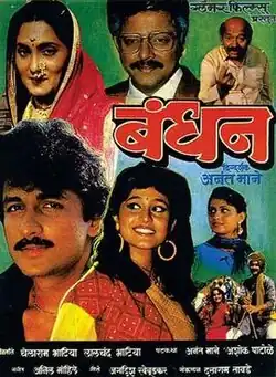 Bandhan is a 1991 Indian Marathi-language Romantic Drama film directed by Anant Mane and produced by Chelaram Bhatia and Lalchand Bhatia under the banner of Glamour Films, featuring Ajinkya Deo, Nishigandha Wad, Asha Kale, Ramesh Bhatkar and Sharad Talwalkar. Nishigandha Wad and Ajinkya deo appeared first time together, In the film, a headstrong Girl marries the young boy , to quell his spirit and teach him a lesson. In the process, she ends up learning a few lessons herself.It was released on 5 March 1991.[1][2]
