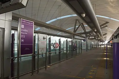 Bang Son station (Thai: สถานีบางซ่อน, pronounced [sā.tʰǎː.nīː bāːŋ sɔ̂n]) is a Bangkok MRT station on the Purple Line on Bangkok-Nonthaburi Road in Bang Sue District, Bangkok. It provides transfers to SRT Light Red Line at Bang Son station, and the State Railway of Thailand at Bang Son halt.