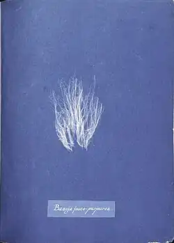 A specimen of Bangia fuscopurpurea, a filamentous species, from the New York Public Library.