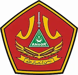 Multipurpose Ansor Front, better known as Banser (abbreviation of Barisan Ansor Serbaguna), is an Islamic militia organization based in Indonesia. It is a paramilitary wing of the youth organization Ansor Youth Movement (GP Ansor) affiliated with Nahdlatul Ulama (NU), the largest Islamic mass organization in the world. Banser operates as a semi-autonomous body of GP Ansor and mainly serves for the security and humanitarian operations. Combined personnel of Banser doubles the number for the Indonesian National Armed Forces (TNI), making Banser (and its parent organization GP Ansor) a political heavyweight which holds the key to the national stability.[4] Throughout the history, Banser had played major roles especially in issues related to religion, from the active participation in Indonesian mass killings of 1965–1966 against the perceived members of Indonesian Communist Party,[5] to the more recent development of standoff against Hizbut Tahrir Indonesia.[6] In terms of political orientation, Banser, along with GP Ansor, is characterized by traditionalist Islam, populism and nationalism.