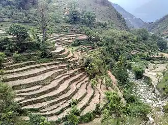 Barahnaja (lit. "twelve seeds") is an ancient traditional system of multiple cropping that is practised in the Indian mountainous state of Uttarakhand.[1] The term literally means "twelve seeds or food grains" in Garhwali, and refers to the twelve types of crops that are grown together in a single field to enhance soil fertility, food security, and ecological balance.[2] There are no pesticides or fertilizers involved in this method, and many crops in the barahnaja system have medicinal uses.[3] This sustainable and traditional farming method is climate-resilient and has been recognized as "organic by default".[4]