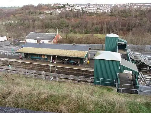 Bargoed railway station serves the town of Bargoed in the county borough of Caerphilly, South Wales. It is a stop on the Rhymney Line of the Valley Lines network and is located close to the Bargoed Interchange bus station.