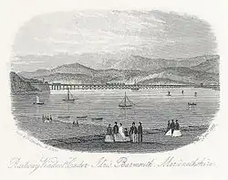 Illustration of the estuary and viaduct (with wooden drawbridge section on the left), c. 1869
