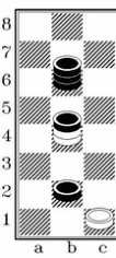 For record a position with column Men are recorded as «О», King as «1». A captured opponent's piece is recorded under note «/».