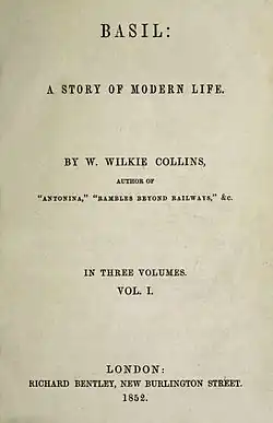 Basil is the second novel written in 1852 by the British author Wilkie Collins, after Antonina.