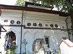 In 1763, Manciu, vătaf (overseer) of butchers, together with his family and other locals, financed a new stone church in place of the previous wooden one, as attested by a carved dedication above the entrance. Construction began that July and finished in October, as indicated by the dedications: to Saint Anne (July 25), Paraskevi of Rome (July 26), and Parascheva of the Balkans (October 14). In a break with tradition, the ktitors are not painted on the walls, but after his death in 1766, Manciu was buried in the vestibule in the spot reserved for church founders.[1]