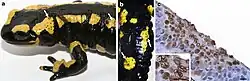 3. ^ Bletz, Molly C.; Kelly, Moira; Sabino-Pinto, Joana; Bales, Emma; Van Praet, Sarah; Bert, Wim; Boyen, Filip; Vences, Miguel; Steinfartz, Sebastian; Pasmans, Frank; Martel, An (2018). "Disruption of skin microbiota contributes to salamander disease". Proceedings of the Royal Society B: Biological Sciences. 285 (1885): 20180758. doi:10.1098/rspb.2018.0758. ISSN 0962-8452. PMC 6125908. PMID 30135150.