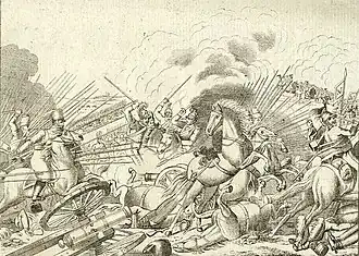 The raid at Altenburg on 28 September 1813 took place during the War of the Sixth Coalition's German Campaign of 1813.[3] The raid was carried out by the Streifkorp under the command of Saxon General Johann von Thielmann commanding seven regiments of Cossacks, a squadron each of Saxon Hussars and Dragoons, and a detachment of Saxon Freikorps numbering about 1,500 cavalry. The objective of the raid was to attempt harassment of the French lines of communication 25 miles (45 km) south of Leipzig shortly before the Battle of Leipzig. The Austrian contingent was commanded by Emmanuel Mensdorff and the Russian contingent of Cossacks by Matvei Platov.[2][4]