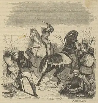 ![]() Battle of Cassel in 1071 (engraving by Gustave Lesestre after Joseph Coomans, 1842) | |||||||
