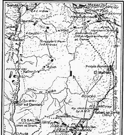 By 26 September the Fourth Army's garrison at Amman (less the rearguard captured at Amman) had not been "heavily engaged,"[8] and "was still intact as a fighting force even though it was in rapid retreat" north along the Hejaz railway and Pilgrims Road, many miles to the east of the Jordan River towards Damascus.[9]
