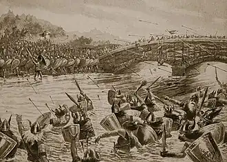 The Battle of Maldon took place on 10 or 11 August 991 AD[1] near Maldon beside the River Blackwater in Essex, England, during the reign of Æthelred the Unready. Earl Byrhtnoth and his thegns led the English against a Viking invasion. The battle ended in an Anglo-Saxon defeat. After the battle Archbishop Sigeric of Canterbury and the aldermen of the south-western provinces advised King Æthelred to buy off the Vikings rather than continue the armed struggle. The result was a payment of Danegeld of 10,000 Roman pounds (3,300 kg) of silver (approx £1.8M at 2022 prices).