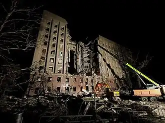 101. ^ Thomas N. (29 March 2022). "Twelve killed in Ukraine's Mykolaiv as rocket blasts hole in regional HQ". Reuters. Archived from the original on 29 March 2022.